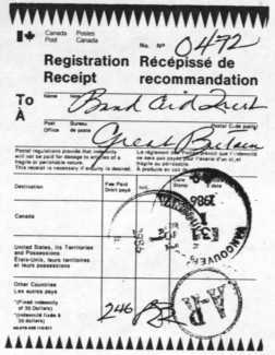 6) copy of the January 24, 1986 statement to Prime Minister Brian Mulroney; with a copy of excerpt from the January 21, 1986 Vancouver Sun titled, "Tears record gets Bruce an award", attached.