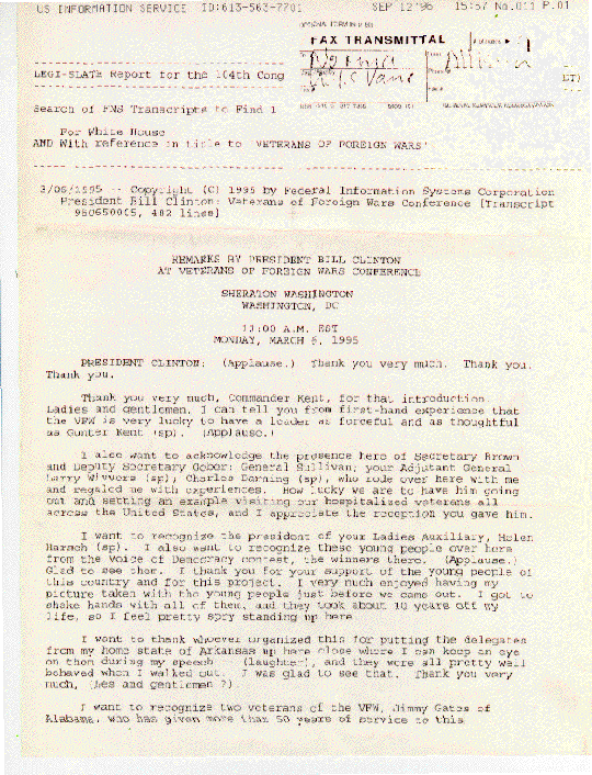 SURE ENOUGH, I FOUND AN ARTICLE ABOUT THE SPEECH TITLED, "CLINTON COMMITTED TO MILITARY AND VETERANS, GORE DECLARES".