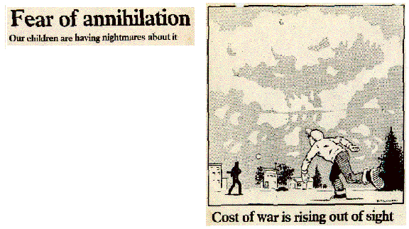 The belief that destruction would be absolute adds to the stress about nuclear war, said Mavis. "To lose a parent is scary enough--but (in a nuclear war) the whole family could disappear in one fell swoop."