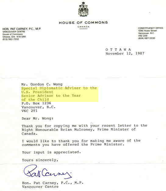 -IT OCCURS TO ME IN JULY, 2001 THAT I OUGHT TO EXPLAIN THAT I CORRESPONDENDED BRIEFLY WITH 3 OTHER MULRONEY GOVERNMENT CABINET MINISTERS IN THE COURSE OF CONTINUING MY "INTERNATIONAL DIPLOMATIC WORK...ON A DIRECT BASIS" FOR THE WORLD'S CHILDREN.